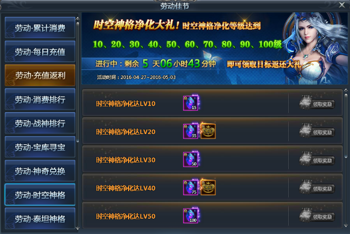 时空神格净化达LV50,即可获得神格净化石*100