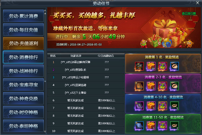 【活动内容】:买买买!活动期间,消费越多,奖励越丰厚,珍藏极品头像外形等你来拿!