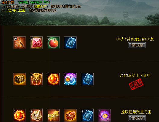 活动期间只要满足界面条件选项即可领取对应奖励,奖励每天重置。