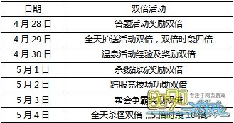 【活动内容】活动期间,每天指定的活动可以获得双倍的奖励