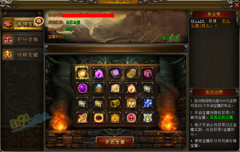 3. 每次开启必将获得对应宝藏奖励,并且获得1宝藏积分。