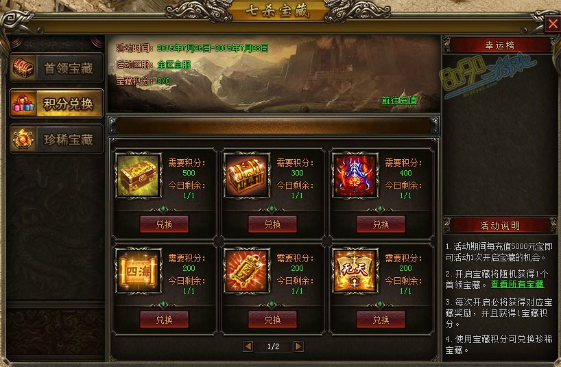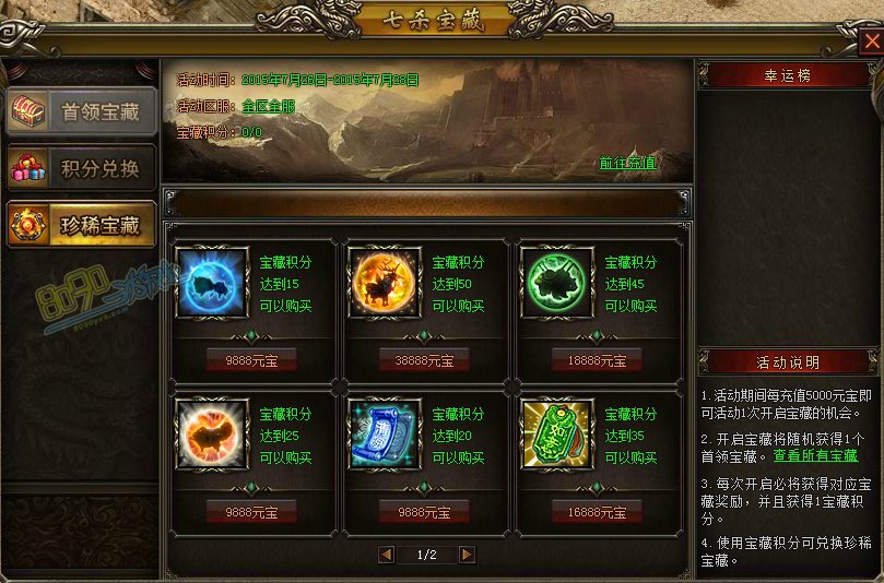 1. 活动期间每充值5000元宝即可活动1次开启宝藏的机会。