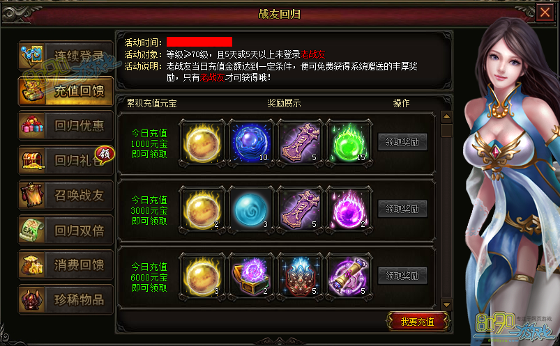 【活动对象】:等级≥70级,且5天或5天以上未登陆的老战友