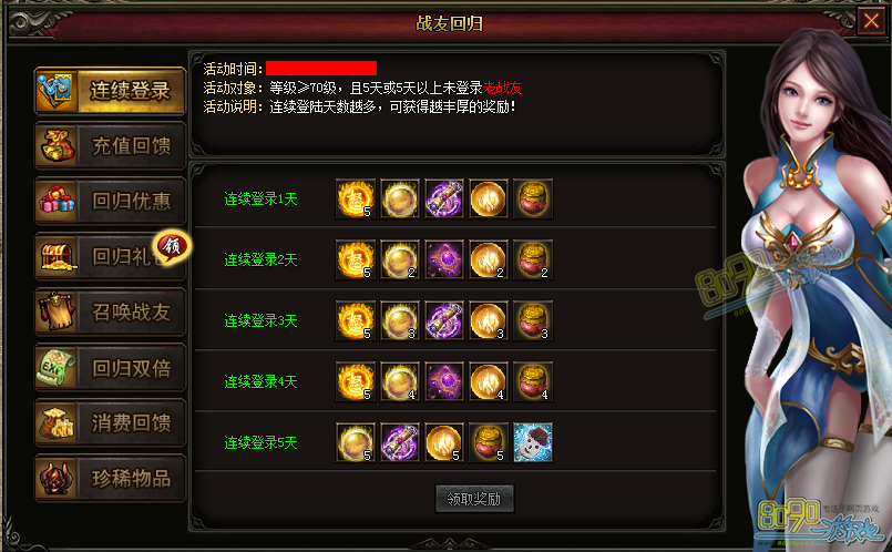 【活动说明】:连续登陆天数越多,可获得越丰厚的奖励