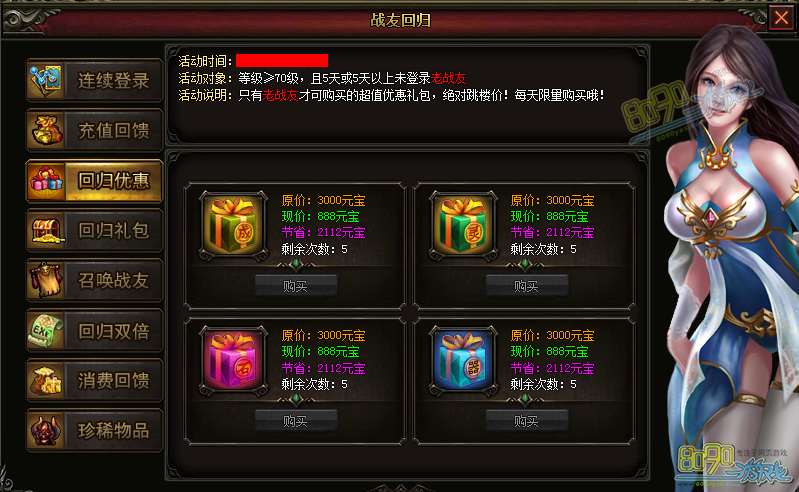 【活动说明】:只有老战友才可购买超值优惠礼包,绝对跳楼价!每天限量购买哦!