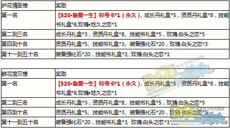 【活动内容】在活动期间,玩家通过赠送鲜花与收取鲜花获得魅力值,登上护花情圣榜(男生排行榜)与宝贝鲜花榜(女生排行榜),排名在前50名的玩家可以获得丰厚奖励!活动奖励将会在次日凌晨通过邮件发放。