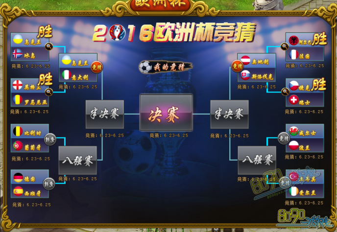 1. 欧洲杯竞猜分成8强、4强、半决赛、决赛;