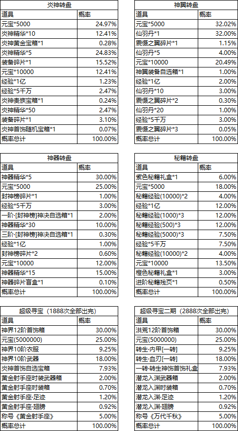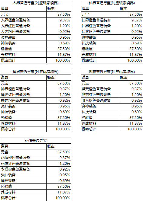 应国家有关法律规定,《王城霸主》对游戏内寻宝产出概率作出如下公布: