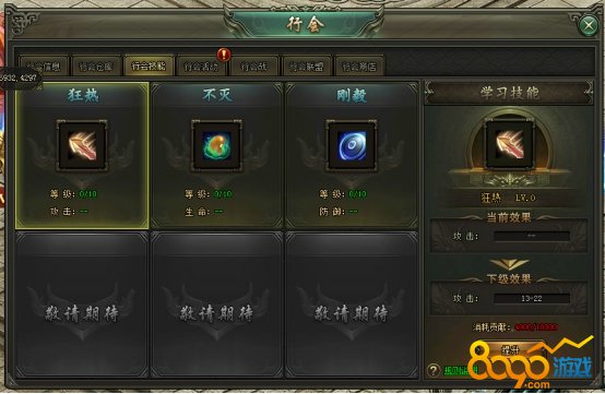 行会技能:消耗行会贡献学习行会技能
