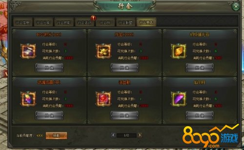 行会仓库:所有人可通过捐献装备获得贡献值,也可消耗贡献值换取仓库装备