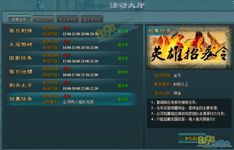 搜索"8090网页游戏"王城争霸招募任务有什么奖励,招募任务怎么做。相信很多玩家对于这一块还不是太了解吧,下面小编就来给大家简单的介绍一下。