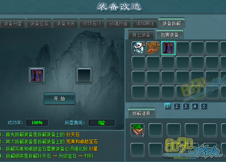 现在游戏中国的装备拆解功能除了可以拆解装备上的星之外,不用的装备也能拆解获得材料了,首先装备拆解130级开启,开启之后选择不需要的装备,然后点开始,即可拆解装备,拆解完了之后玩家可以获得拆解道具栏目中所显示的材料。