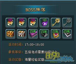 在大家进行5倍泡点的同时,您还可以打boss,打败boss后它的身上会掉落四等玄铁、紫晶、黒木以及各种钥匙等,奖励很丰富。