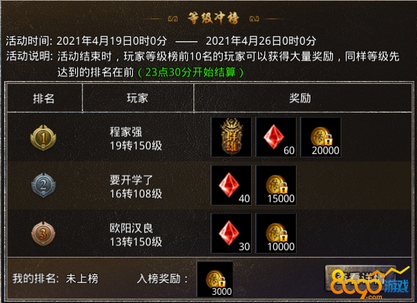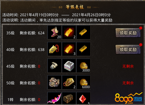 开服前7天,率先达到指定等级的玩家可以获得大量奖励;