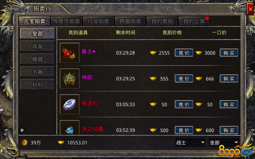 此外,一些行会玩法会产生一些稀有的道具,也会出现在拍卖行中,这些道具会优先在行会里进行拍卖,拍卖成功的会对每个参与活动的行会成员进行分红,为拍出的物品会转移到世界继续拍卖。所以,这是一个非常重要的系统,可以帮助大家获得分红,还能保证物品的流通。