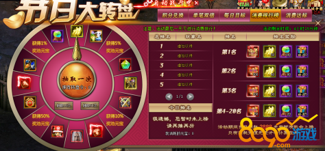5、 活动-消费排行榜;活动时间(2018.12.22-2018.12.29)活动期间内,当日的元宝(只计算充值元宝)消费达到3888即可有机会上榜,排名越高,奖励越丰厚;活动期间每日统计排行(开服时间大于=4天的服务器开放)