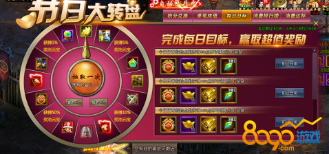 4、 活动-每日目标;活动期间内玩家当日的日常积分达到对应值即可领取丰厚奖励,隔日重置(开服时间大于=1天的服务器开放)