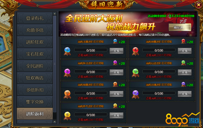 活动期间每消耗一定数量的进阶材料进阶即可获得大量的材料返利。