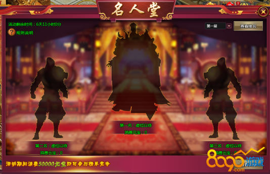 第一届名人堂活动将在2月22日火爆上线!活动持续7天,活动期间,只要消费50000元宝以上,即有机会登上名人殿堂。消费元宝前20名的玩家即可上榜(全区服)