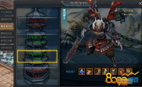 转生BOSS层数越高,对应的BOSS等级就越高,BOSS掉落的材料装备也就越高越好,待我们准备好时,一定要挑战一下转生BOSS,确立我们的霸者地位!