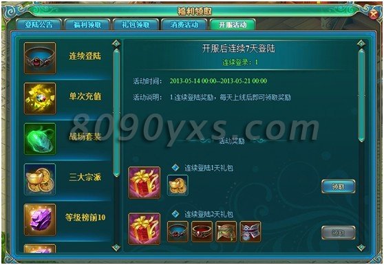 活动期间,每天消费达到一定元宝,即可领取对应数值的奖励