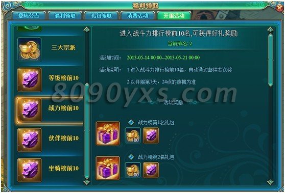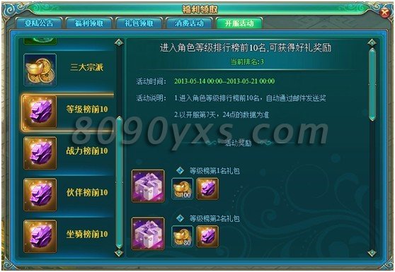 1. 进入宗派排行榜前3名,自动通过邮件发送奖励