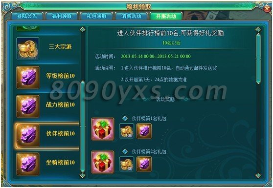 1. 进入伙伴排行榜前10名,自动通过邮件发送奖励