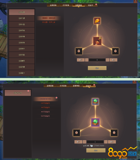 8090《威剑苍穹》游戏主界面下面可以打开合成界面。