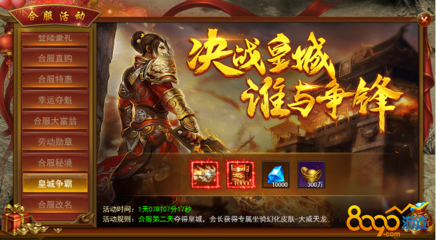 合服后第二天开启皇城争霸,获胜会长可获得专属坐骑幻化皮肤。