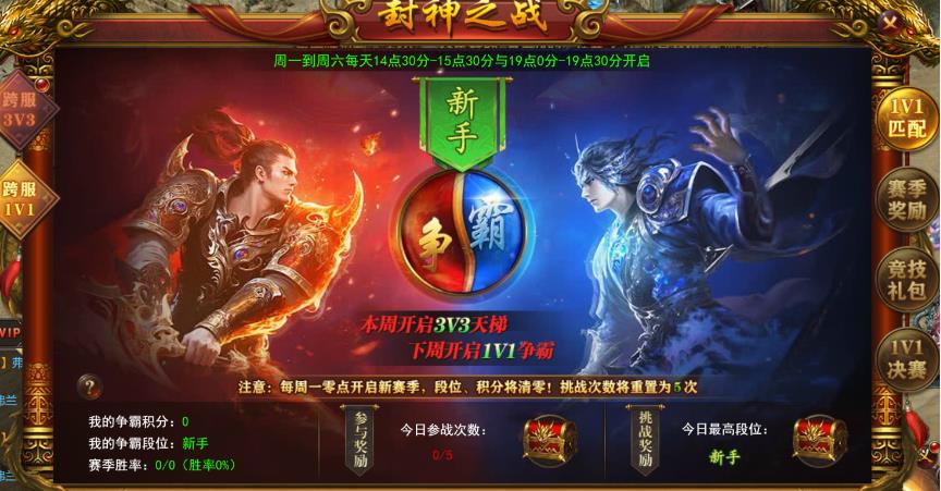 1、跨服1V1是赛季制玩法,一周一个赛季