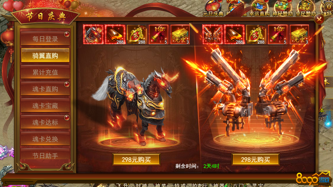 搜索"8090网页游戏"《维京传奇》这款经典的三职业传奇游戏,三端互通,自由转职,2023全新传奇,百倍爆率,千倍爆率地图全开,VIP免费送,GM随便领,激情攻沙,万人同时在线,还是当年的传奇!今天给大家详细介绍一下维京传奇的骑翼直购活动。