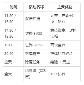 掌握每日活动时间,按时参与是平民玩家积累资源的关键: