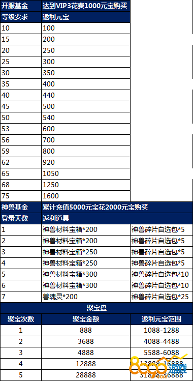 基金+首充+聚宝+vip特惠礼包+限时礼包: