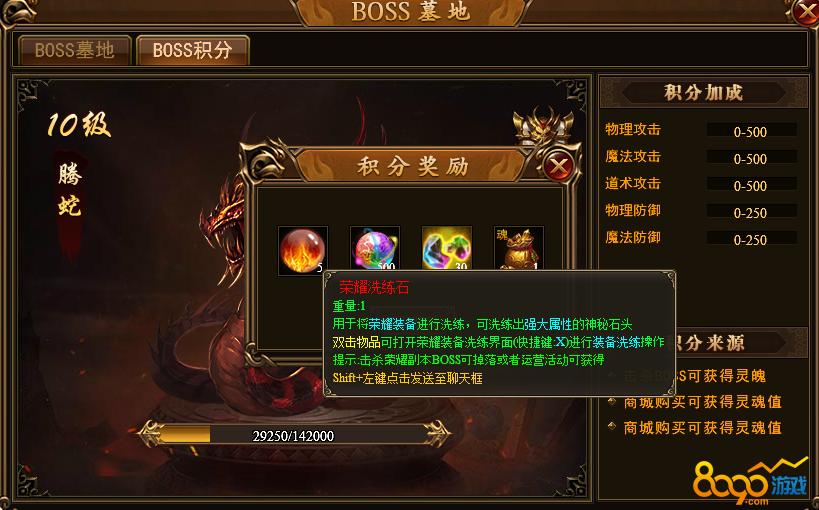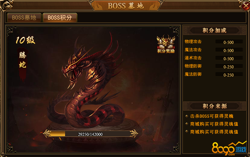 玩家可通过击杀BOSS获得BOSS灵魂,灵魂在使用10次后点亮墓地之后在继续使用将会增加墓地积分。
