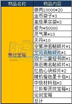 龙腾银卡包*1,银两*10万,修为*2万,灵气果*5,