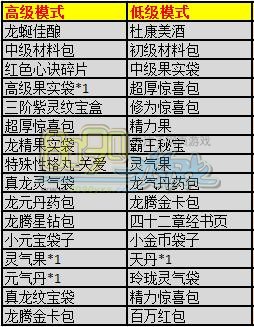 龙腾金卡包*1,银两*30万,初级果实包*20,初级材料包*20,
