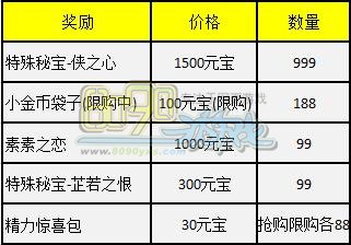 3. 活动期间,抢购或限购价格,数量均参照下表。
