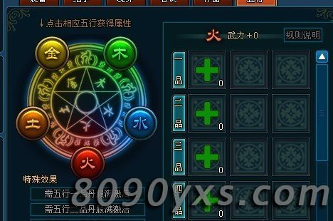 当服用满一品丹药后会激活五行特殊属性,会给侠客极大的战力加成,各位大侠不要错过!~祝各位游戏愉快,更多精彩详情,请关注官网:http://wl3.8090yxs.com/