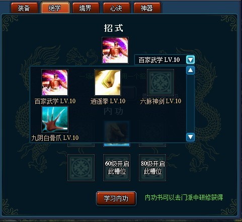 武林3绝学相当于武功技能,运用于战斗中,提升战斗力。