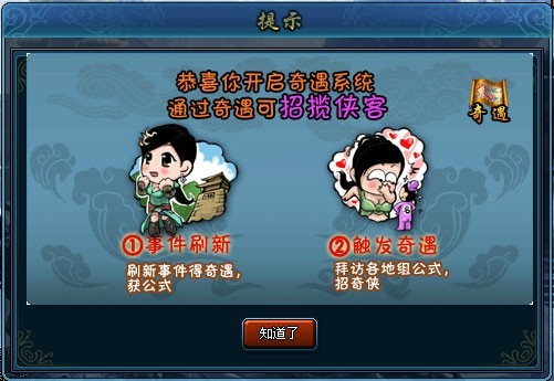 3. 奇遇事件:满足事件的公式,即可获对应的侠客。