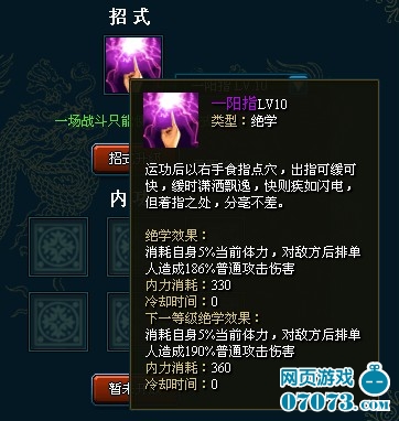 2. 技能特点:先天功,一阳指