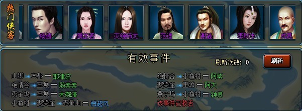 3. 奇遇事件:满足事件的公式,即可获对应的侠客。