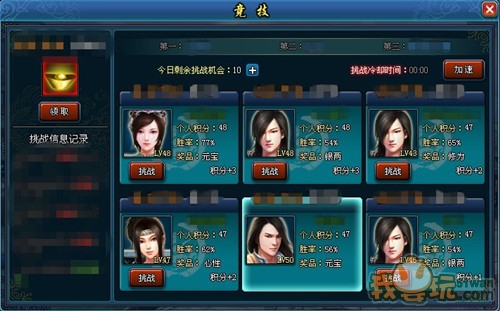 4.竞技:挑战竞技排行,可获得元宝、经验、修为等。在当前排名,每到一定时间,就可以领取一次奖励。