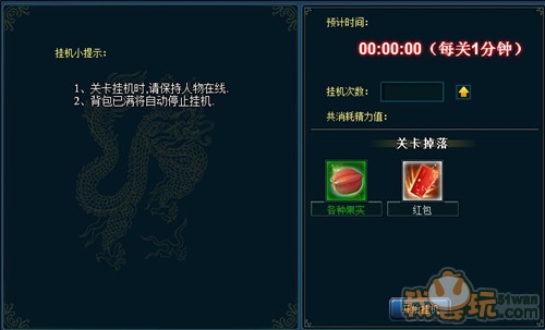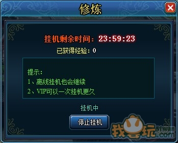 7.挂机:在玩家完成了所有任务也刷完了关卡的时候,就可以选择挂机,挂机系统可以在玩家在线或者不在线的时候获取一定的经验。