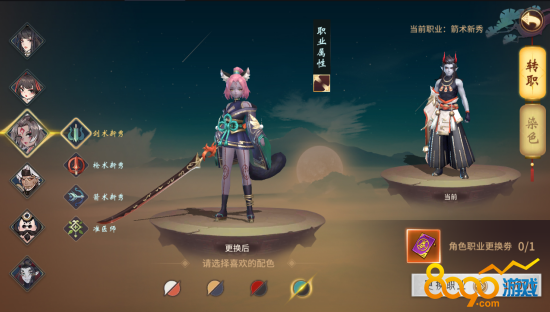 我们游戏一共有8个职业可任意挑选,如果勇士你想体验别的职业,可到玄都找到职业转换NPC-无尘子进行转职,转职需消耗铜币和角色职业变更券。