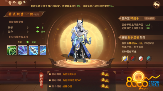 1、角色满足等级、角色评分和通关指定关卡三个条件后,可进行职业晋阶