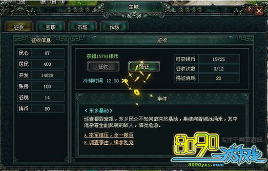搜索"8090网页游戏"在卧龙吟中,征收是每天都要做的事,但是看到那么多的征收事件你是不是觉得很头疼啊,下面是小编特地为大家准备的征收事件,希望能帮助到大家。
