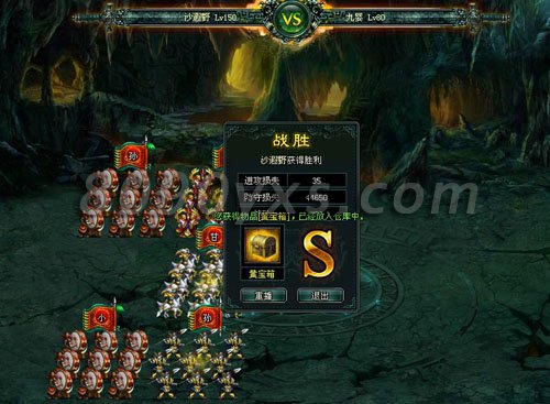 从开始到最后,掉落的宝箱档次也是不一样,从蓝到绿到黄到红到紫再到橙色宝箱。宝箱打开后可能开出龙玉、将魂、魂晶、试炼令、银币、各种等级的装备等丰厚奖励,甚至连武将顿悟所需的酒、肉、包子等也会开出,应有尽有而且数量可观。