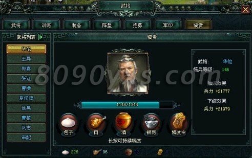 可以确定的是包、肉、酒对应比例分别是3、9、25经验,银子是4万1经验,犒赏玩法其实和知己一样,就是靠经验累积升级,暂时极限是180级,可以增加将近2.8万兵力。效果是随着等级增高呈增数列趋势,也和知己如出一辙。面对着海量食材和银币的需求,很多玩家可能顿时心慌,丧失了信心。既然我等皆不是可以挥金如土的大R们,不能顷刻之间得来几万食材,唯有卧薪尝胆,步步为营。依靠着日积月累的坚持,早日成就自己超越9万兵力的“神将”。