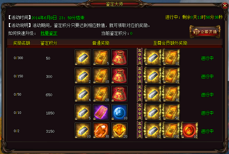 至尊会员额外奖励:绑定金条(小) *1、鉴定符*10
